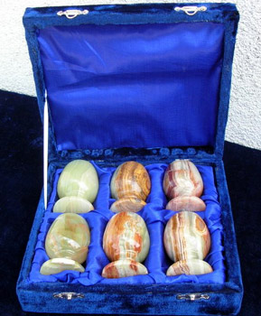 Sada 6ks pohárků 5 x 7,5 cm z Aragonitu v dárkové krabici, země původu: Pákistán