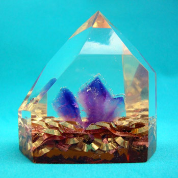 Orgonit - krystal exklusive 6cmOrgonitový krystal velikosti 60x35 mm uvniř s krystaly ametystu z Brazílie a výška 60 mm.